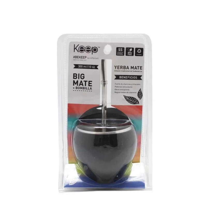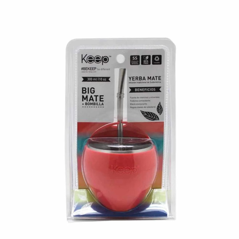 Mate grande de acero inoxidable con funda de silicona que incluye bombilla.