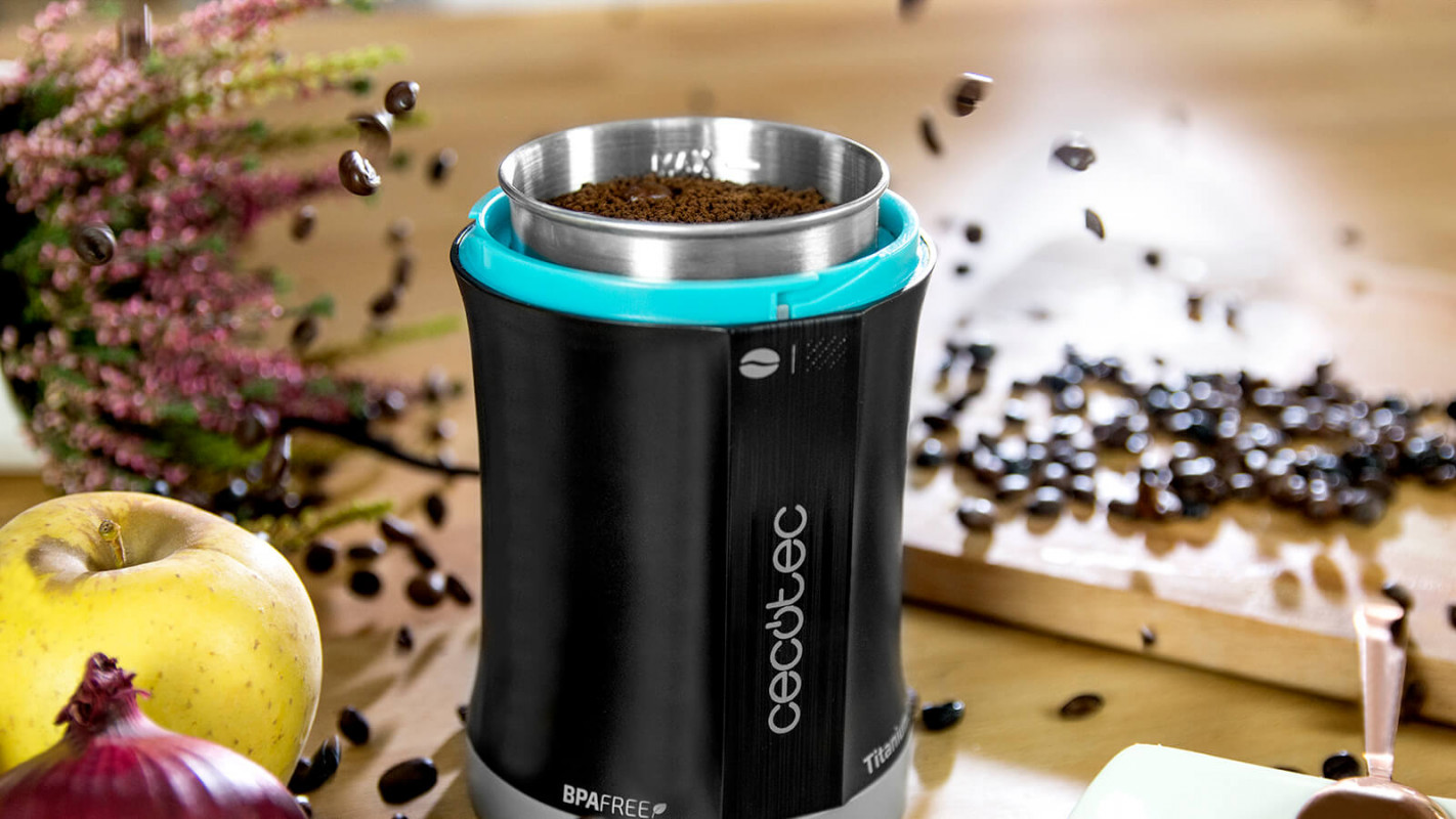 Molinillo de café y especias eléctrico con cuchillas recubiertas de titanio y 200 W de potencia.