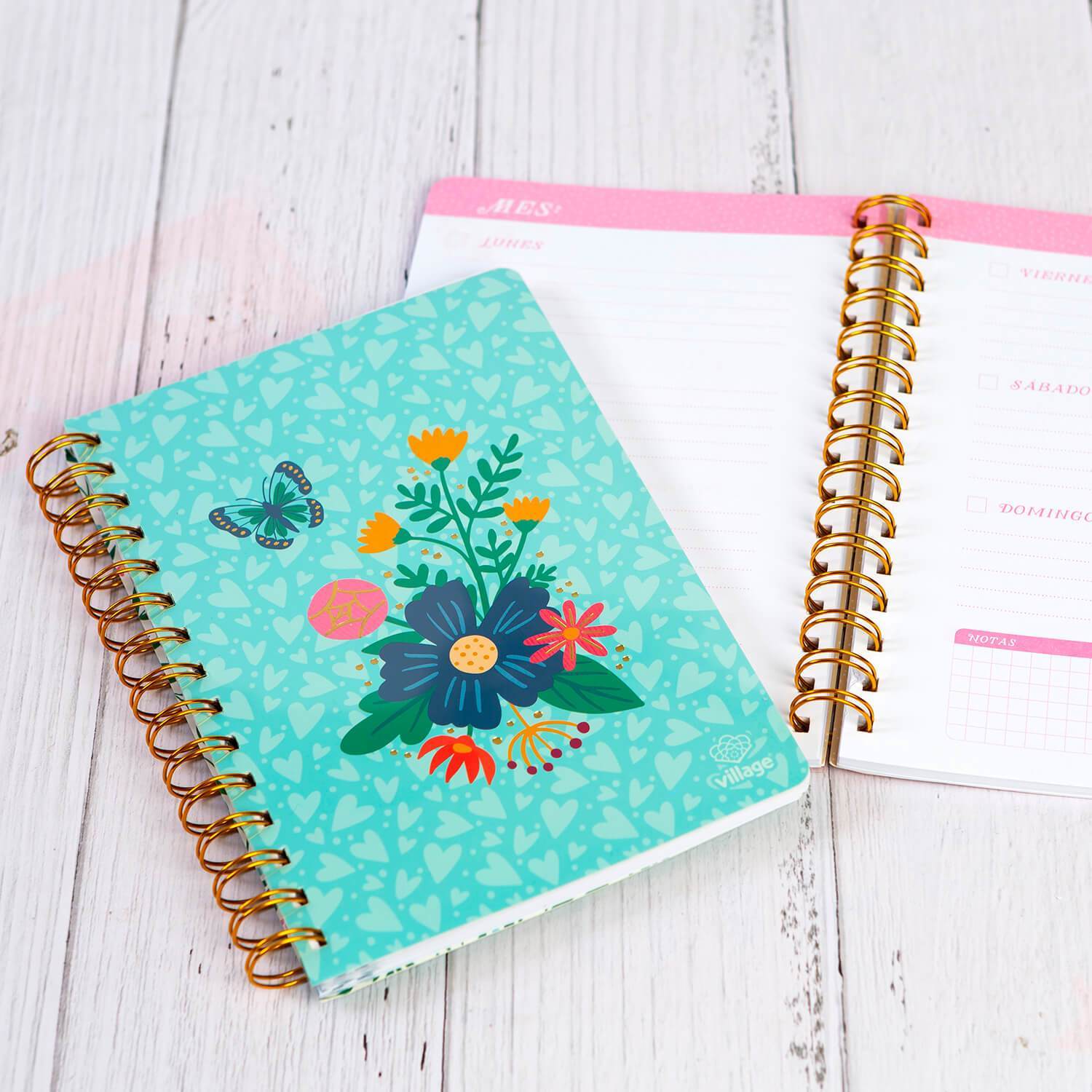 Planner espiral corazones y flores - Village